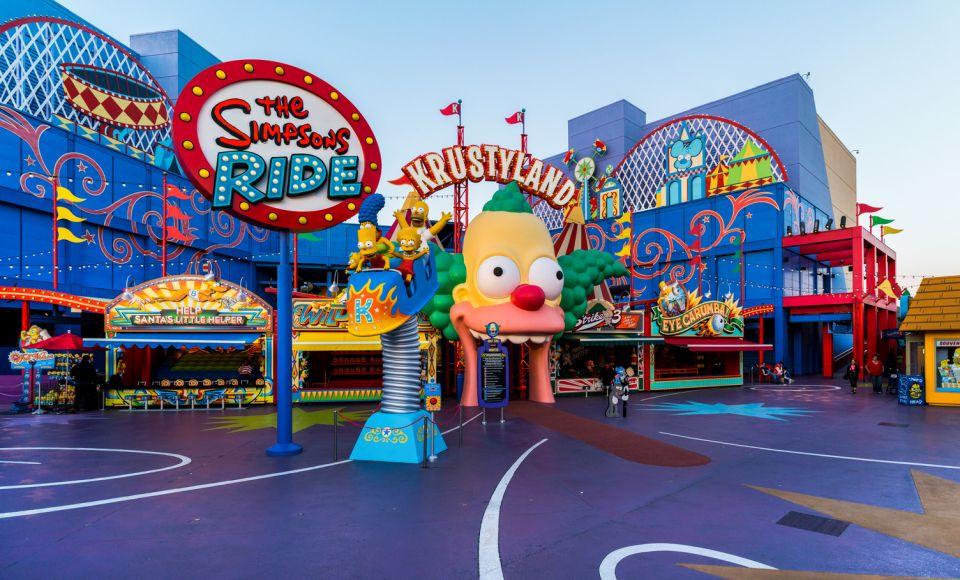 The Simpsons Ride: רכבת הרים מדומה מקורה העוברת דרך סצנות בהשראת הסימפסונים, מלאות בדמויות מוכרות.